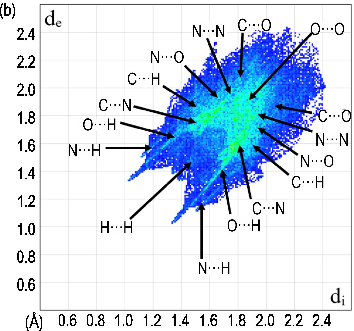 摘要:为解决绿色高能氧化剂二硝酰胺铵(ADN)强吸湿性制约其工程应用的问题,制备ADN/六亚甲基四胺(HMTA)共晶并对其进行性能研究。采用溶剂挥发法制备ADN/HMTA共晶,通过单晶X射线衍射(SC-XRD)、X射线衍射(XRD)、傅里叶变换红外光谱(FT-IR)、有机元素分析(EA)、同步热分析(TG-DSC)、氧弹量热法、BAM撞击/摩擦感度测试及吸湿性测试,系统表征共晶的晶体结构、纯度、热性能、能量性能、机械安全性与吸湿性;借助Crystalexplorer构建2D指纹图谱对其分子间相互作用进行研究。结果表明,该共晶不对称单元中含2个ADN分子与1个HMTA分子,属单斜晶系C2/c空间群,密度为1.564 g·cm-3,分子间相互作用分析有效印证了共晶中形成了键长更短、强度更强的N─H…N氢键;XRD与EA验证共晶为纯相且ADN与HMTA摩尔比为2∶1;热性能方面,共晶熔点为130.2 ℃,比ADN高38.8 ℃,热分解起始温度为168.5 ℃,比ADN高14.3 ℃;能量性能方面,共晶生成焓为-492.55 kJ·mol-1,理论比冲值为201.07 s,爆速为7854 m·s-1、爆压为20.72 GPa;机械感度方面,摩擦感度为288 N,撞击感度大于50 J,均高于ADN;吸湿性能方面,25 ℃、70%相对湿度下共晶153 h的吸湿率为0,而ADN 48 h时吸湿率已达20.95%。ADN/HMTA共晶的制备有效解决了ADN的强吸湿性问题。