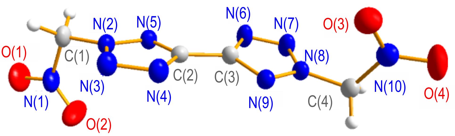 摘要:联四唑因氮含量超80 %且拥有优异的爆轰性能,成为含能材料领域的研究重点,但其稳定性欠佳的问题严重制约了实际工程应用。本研究以5,5"-联四唑二铵盐为起始原料,通过亲核取代反应将溴代硝基甲烷连接到联四唑分子骨架上,成功合成出一种稳定性显著提升、可潜在应用于低共熔物的新型硝基甲基取代的联四唑含能化合物(