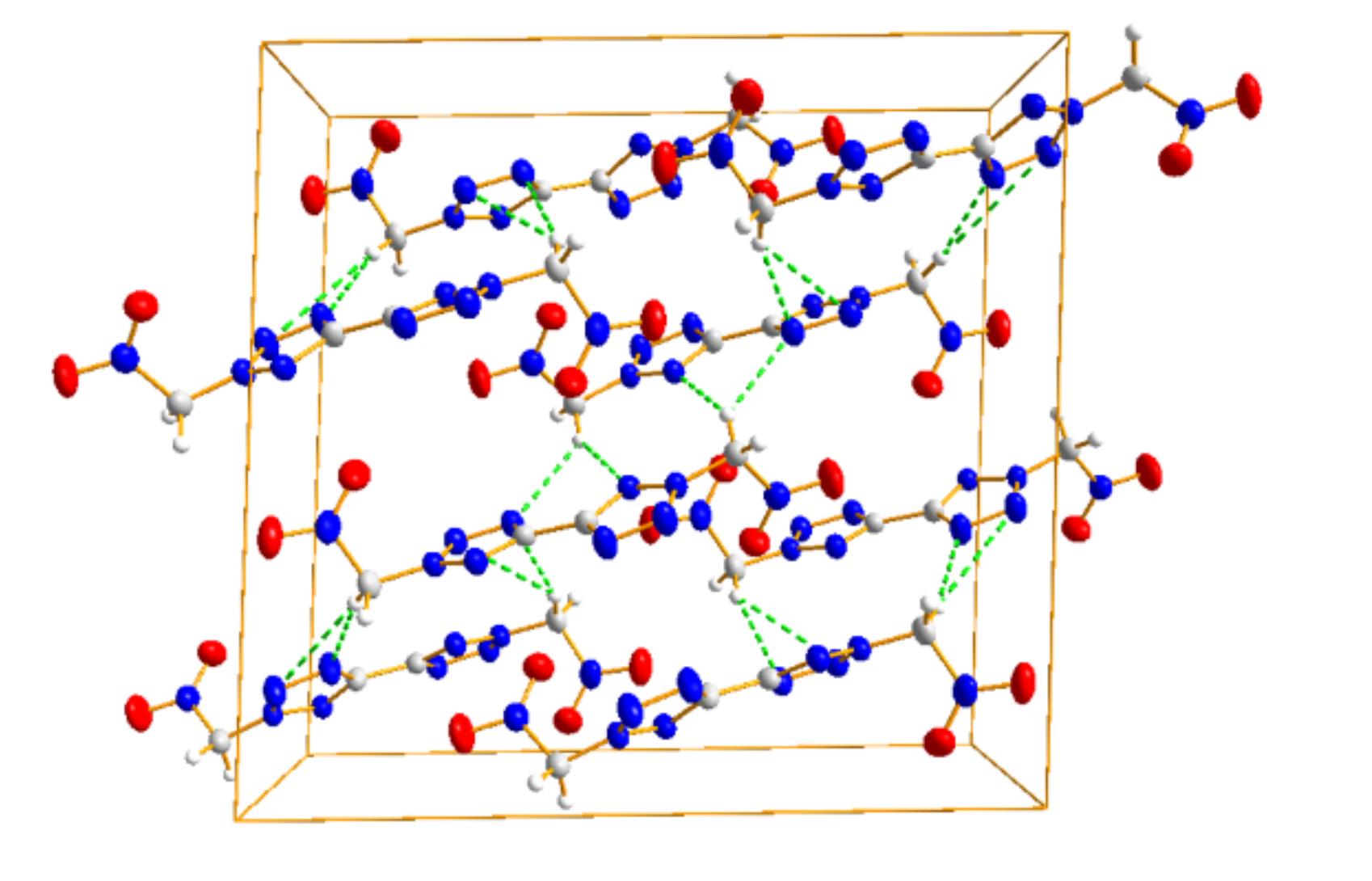 4 )。该化合物的结构经核磁共振波谱(NMR)、高分辨质谱(HRMS)及红外光谱(IR)等多种手段确认。X射线单晶衍射分析表明,化合物4 属于正交晶系,空间群为Pbca,晶体呈层状堆积,室温下晶体密度为1.701 g·cm-3。热重-差示扫描量热(TG-DSC)测试显示,该化合物的热分解起始温度达167 ℃。基于EXPLO5软件的理论计算表明,其理论爆速和爆压分别为8078 m·s-1和25.2 GPa。此外,采用BAM法测得该化合物的撞击感度为9 J,摩擦感度为180 N。 -