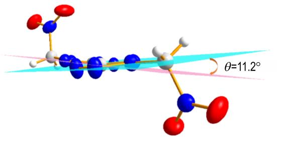 1 ),产率高达89.3%。采用核磁共振、红外光谱和X射线单晶衍射对目标化合物进行结构表征。化合物1 晶体属于单斜晶系,C2/c空间群,室温下的单晶密度为1.774 g?cm-3。使用EXPLO5软件计算其爆轰性能,同时利用热重-差示扫描量热联用仪和撞击/摩擦感度仪测试其热分解温度与机械感度,结果表明化合物1 的起始热分解温度为303 ℃,根据实测密度计算的爆速和爆压分别为7680 m?s-1和22.7 GPa,撞击感度和摩擦感度分别大于60 J和大于360 N,是一种有潜在应用价值的耐热不敏感炸药分子。 -