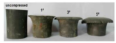图 4 铅柱压缩前后对比图 Fig.4 Experimental pictures of lead cylinder compression |