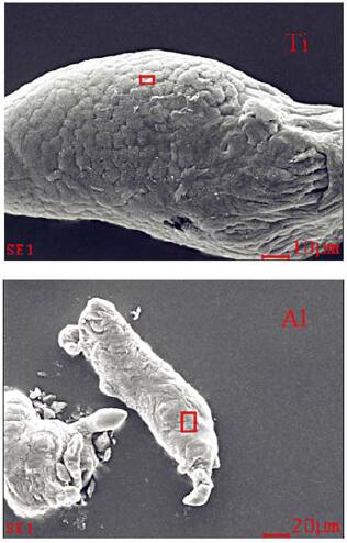 图 5 钛粉和铝粉的电镜图片 Fig.5 SEM images of titanium powder and aluminum powder |